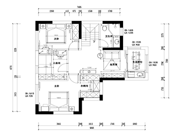 宜簡不易繁,宜藏不易露。空間干凈爽朗,沒有床頭柜設計,將書桌與吊柜結合在一起,設計簡單分區合理。兒童房空間面積較小,采用飄窗、書柜、衣柜一體化設計,將空間面積利用到最大化,橙色柜體打破空間的僵硬感。