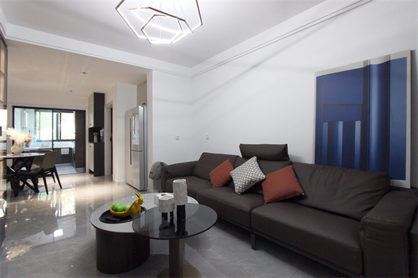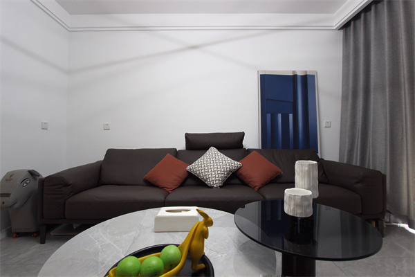 兼顧實用與空間美學的深色沙發(fā),充分彰顯了格調(diào)生活的精髓。大理石+玻璃茶幾的應用,高低錯落的設計,極大地節(jié)省了空間。沙發(fā)右側(cè)擺放一幅裝飾畫,增加了室內(nèi)的縱伸感,也讓空間更顯開闊。