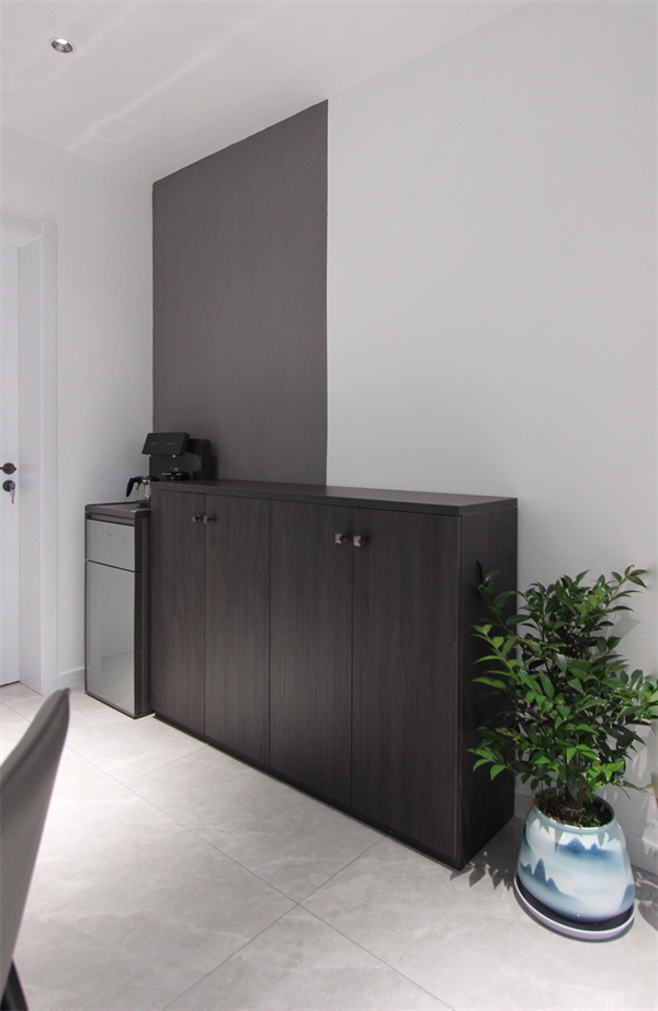 重新砌墻打造次臥空間,讓兩個空間都有了各自的隱私需求。墻面1/3處選用灰色來進行分割,放置斗柜,滿足日常收納需求,也不會占據(jù)過多的空間。