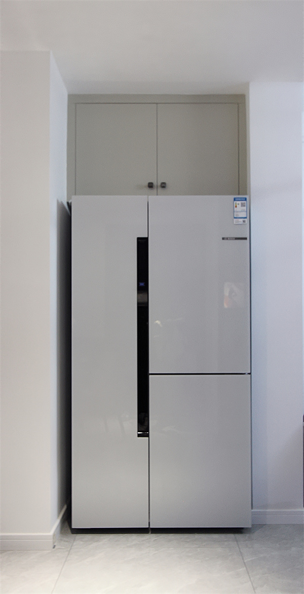 充分利用空間,內(nèi)嵌雙開門冰箱,既能與家居環(huán)境更好的融為一體,不會顯得突兀,美觀又可節(jié)省空間,使用起來也很方便。