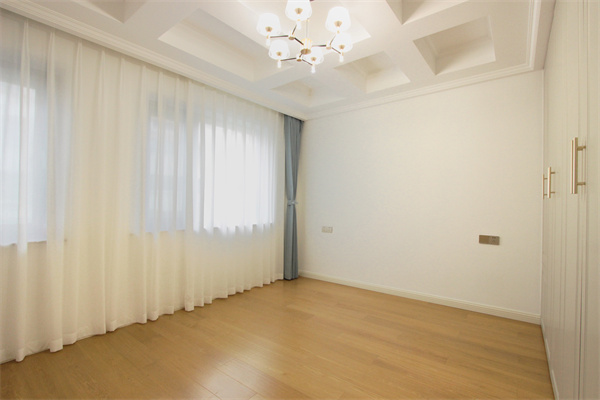 女兒房傳達著一份甜蜜安靜的視覺美感,溫潤自然的色調,營造出舒心的睡眠環境。大面積的落地窗,帶入充足的自然光線,彰顯平和自在。美式雙人軟床加以素雅舒適的床品,配合圓形吊燈,在浪漫的氛圍中表達生活的儀式感。
