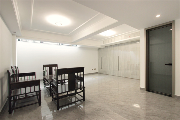 別墅地下室作開放式茶室空間,閑暇之余既能靜心品茗,家中來客之時又能用于招待客人。古色古香的實木茶桌、茶椅,古韻十足。在忙里偷閑的時光里,伴著茶香,忘塵世煩事,從喧囂之中掙脫出來。