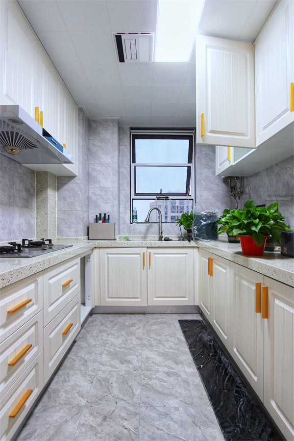 白色,透露出來的是賞心悅目的細致,U形廚房設計,擴大了廚房的操作空間,動線合理。
