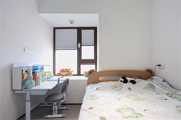 為老人量身打造了一間父母房,與客衛緊密相連,極大地方便了老人的起夜需求。將床挪至窗邊,對于父母房而言這樣可以節省空間,保證老人有充足的活動空間。