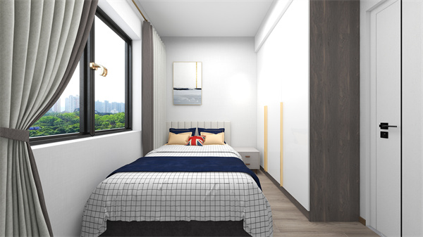 兒童房面積有限,為滿足生活需求、提高空間利用率為根本,在極限尺寸的限定下,只放置了單人床和衣柜。