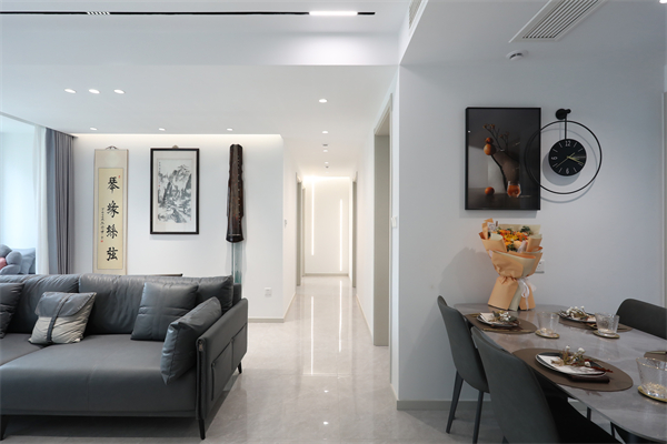 由玄關(guān)入內(nèi),文化底蘊(yùn)的味道便撲面而來(lái),但也絲毫不搶室內(nèi)簡(jiǎn)約主題的風(fēng)頭。