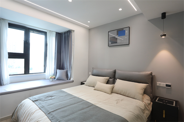 床頭柜與衣柜一體,將有限的空間充分利用,無(wú)論是開(kāi)放格的設(shè)計(jì)還是燈光的利用,生活美學(xué)都展現(xiàn)于此。