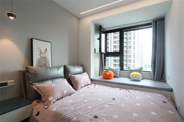 生活不能隨心所欲,但家可以。女兒房面積不大,但是朝南帶飄窗的臥室可以讓睡眠非常的舒適。