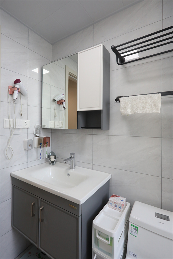 外衛(wèi)做到干濕分離,外部的洗漱干區(qū)做開(kāi)放式設(shè)計(jì),為洗漱區(qū)創(chuàng)造更多功能性。
