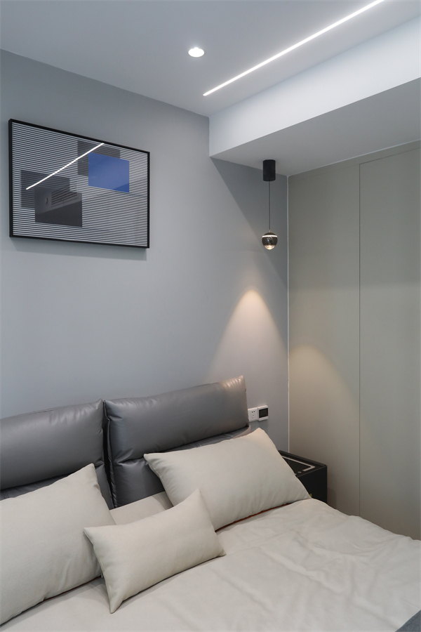 主臥延續(xù)了全屋無(wú)主燈是主題,以簡(jiǎn)單燈光為室內(nèi)做裝飾,將簡(jiǎn)約風(fēng)格進(jìn)行到底。