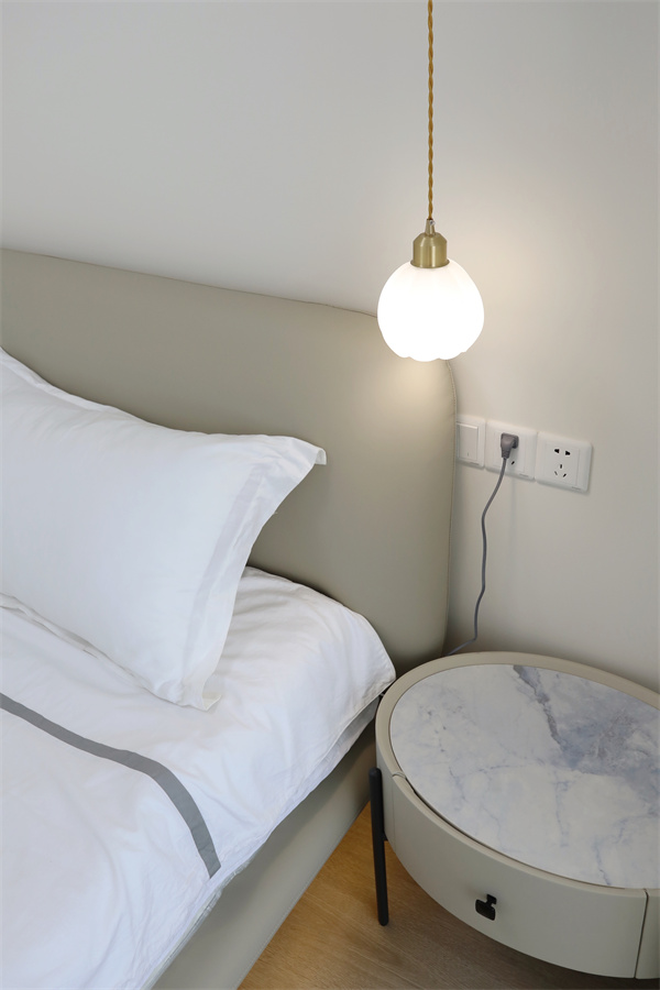 臥室使用柔和的燈光,床下設計燈帶,在溫馨暖色的映襯下,營造慵懶舒適的氛圍感。
