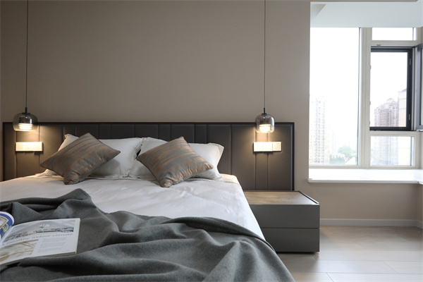 臥室按照業主喜好,以深沉的色調為主,營造一種低調的舒適感。