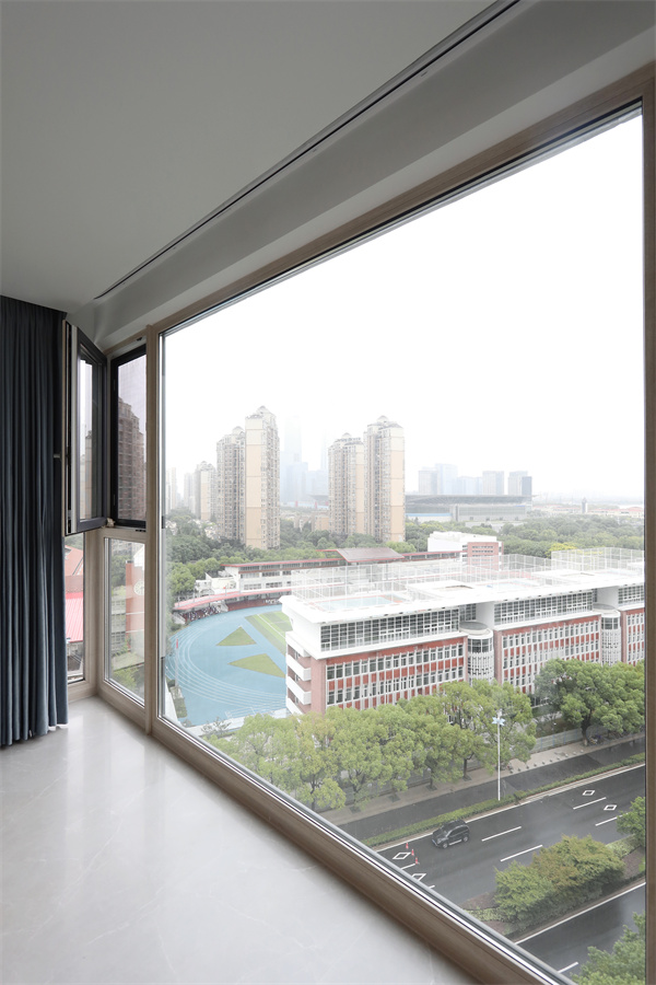 業主更喜歡自然照明,而不是利用燈光做效果,因此陽臺不做晾曬用途,而是利用自帶的超大落地窗,為室內引入自然光線。