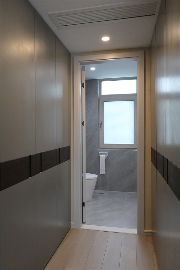 另一側連接內衛,形成主臥套房的效果,南北開窗,即可使空間自然流通。