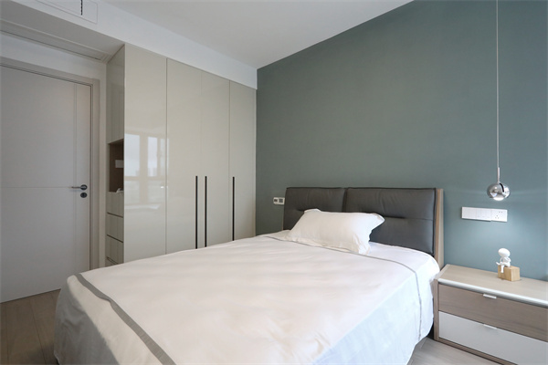 但依舊設計整面墻的收納柜,保留應有的臥室功能。